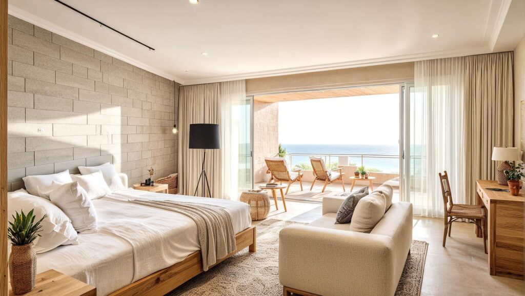 65 m² genişliğe sahip bu zarif süit, iki yatak odasıyla toplam 6 kişiye konforlu konaklama imkânı sunuyor. Modern tasarımı ve ferah yaşam alanlarıyla ailenizle birlikte lüksü doyasıya yaşayabilirsiniz. Geniş balkonu, Akdeniz’in büyüleyici manzarasını her an odanıza taşıyor. Denizle iç içe, ferah ve şık bir konaklama deneyimi sizi bekliyor.